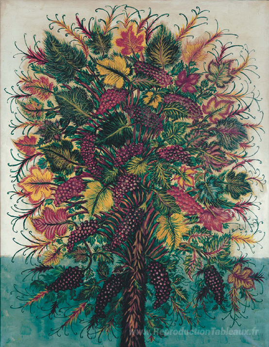Nous vous proposons une reproduction artisanale sur toile du célèbre tableau 'Les Grappes de Raisin' de Seraphine Louis, provenant du Musée de la Reproduction.