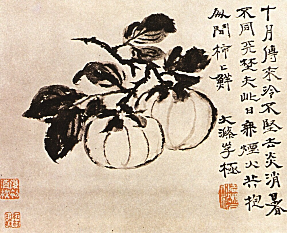 Nous vous proposons une reproduction artisanale sur toile du célèbre tableau 'Les melons' de Shitao, provenant du Musée de la Reproduction.