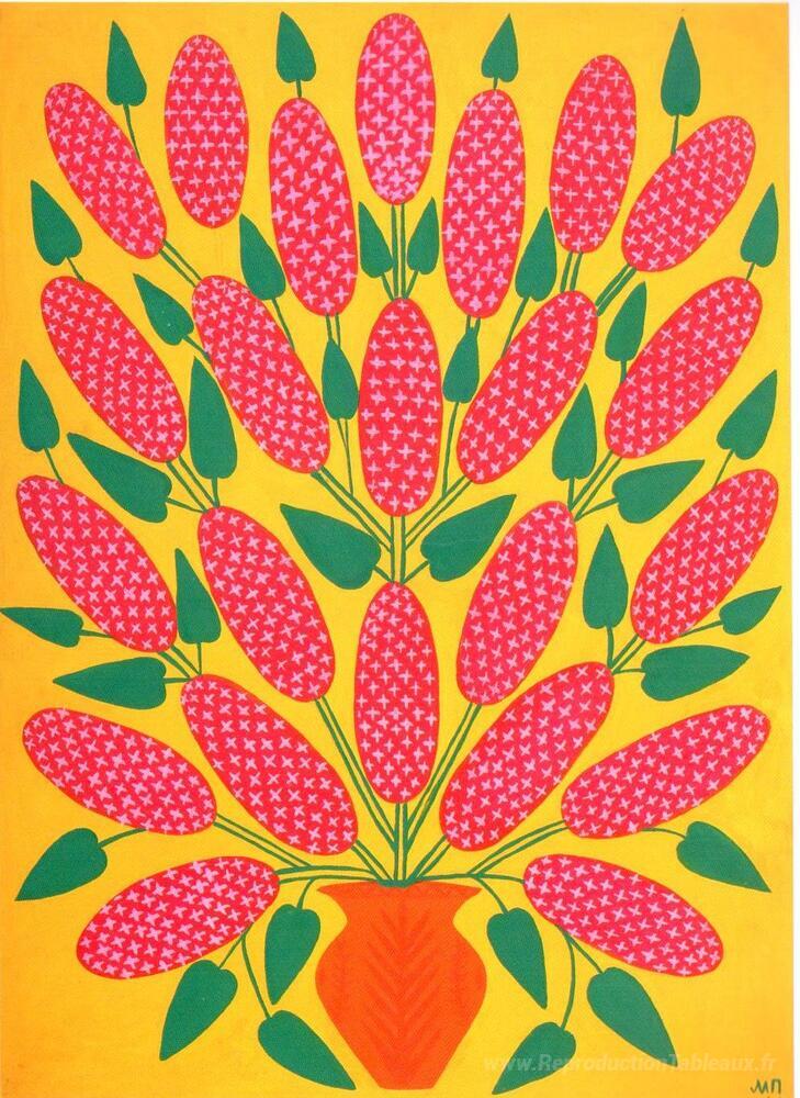 Nous vous proposons une reproduction artisanale sur toile du célèbre tableau 'Lilas' de Maria Primachenko, provenant du Musée de la Reproduction.
