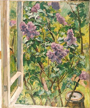 Nous vous proposons une reproduction artisanale sur toile du célèbre tableau 'Nature morte. Lilas dans la fenêtre.' de Pyotr Konchalovsky, provenant du Musée de la Reproduction.