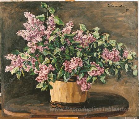 Nous vous proposons une reproduction artisanale sur toile du célèbre tableau 'Nature morte. Lilas dans une baignoire.' de Pyotr Konchalovsky, provenant du Musée de la Reproduction.