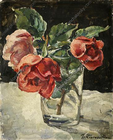 Bienvenue sur notre site dédié à l'art sous toutes ses formes. Nous vous invitons à découvrir la délicatesse et l'élégance de la peinture à l'huile à travers l'œuvre Nature morte. Trois roses de l'artiste russe emblématique Pyotr Konchalovsky. Ce chef-d'œuvre, caractérisé par un jeu subtil de lumière et d'ombre, évoque la beauté éphémère des fleurs tout en rendant hommage à la richesse des couleurs de la nature.