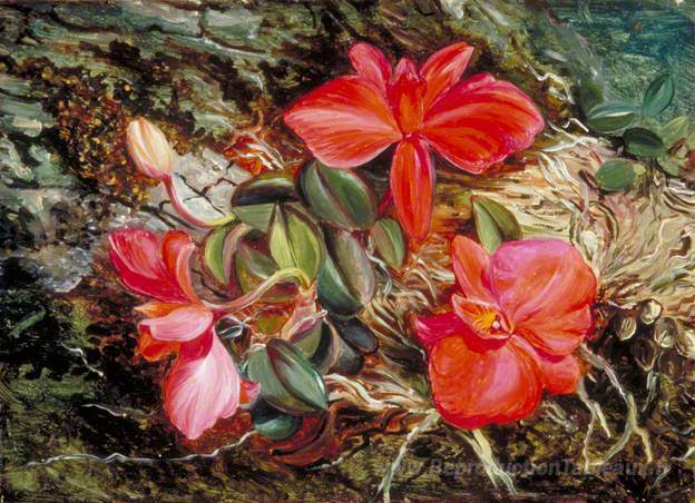 Nous vous proposons une reproduction artisanale sur toile du célèbre tableau 'Orchidée brésilienne' de Marianne North, provenant du Musée de la Reproduction.