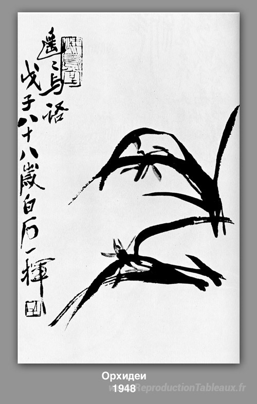Nous vous proposons une reproduction artisanale sur toile du célèbre tableau 'Orchidées' de Qi Baishi, provenant du Musée de la Reproduction.
