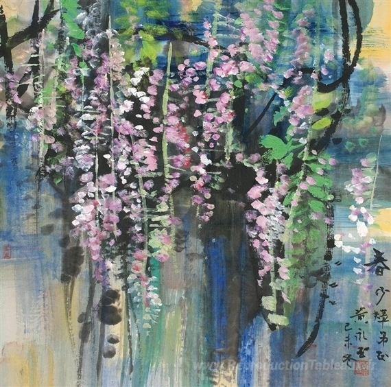 Nous vous proposons une reproduction artisanale sur toile du célèbre tableau 'Printemps' de Huang Yongyu, provenant du Musée de la Reproduction.