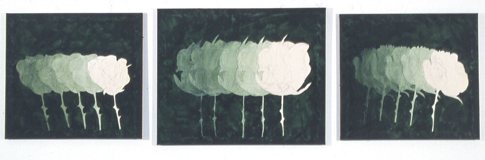 Nous vous proposons une reproduction artisanale sur toile du célèbre tableau 'Une rose est une rose (Alice)' de Denise Green, provenant du Musée de la Reproduction.