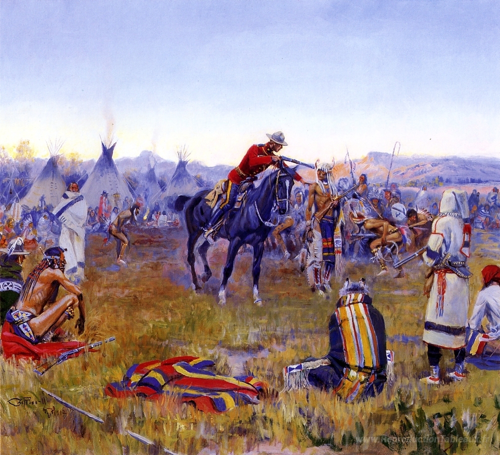 Nous vous proposons une reproduction artisanale sur toile du célèbre tableau 'À la seule main' de Charles M. Russell, provenant du Musée de la Reproduction.