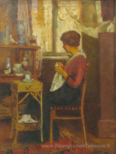Nous vous proposons une reproduction artisanale sur toile du célèbre tableau 'À l'atelier' de Stefan Luchian, provenant du Musée de la Reproduction.