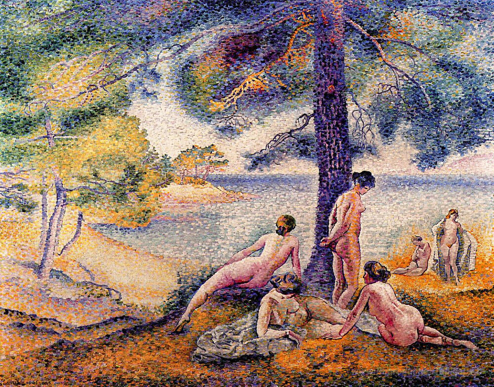 Nous vous proposons une reproduction artisanale sur toile du célèbre tableau 'À l'ombre' de Henri-Edmond Cross, provenant du Musée de la Reproduction.