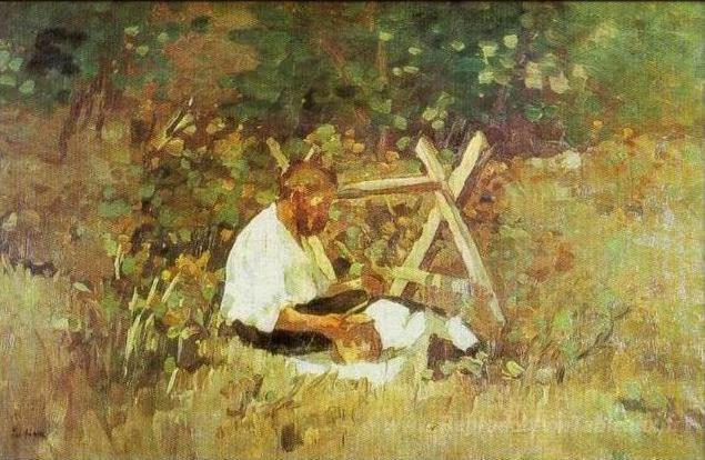 Nous vous proposons une reproduction artisanale sur toile du célèbre tableau 'À Nami (coupe-bois)' de Stefan Luchian, provenant du Musée de la Reproduction.