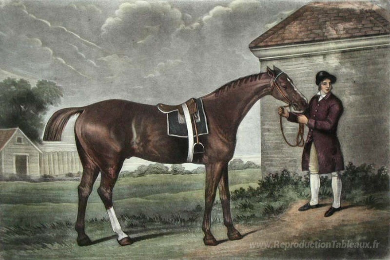 Nous vous proposons une reproduction artisanale sur toile du célèbre tableau 'Éclipse' de George Stubbs, provenant du Musée de la Reproduction.