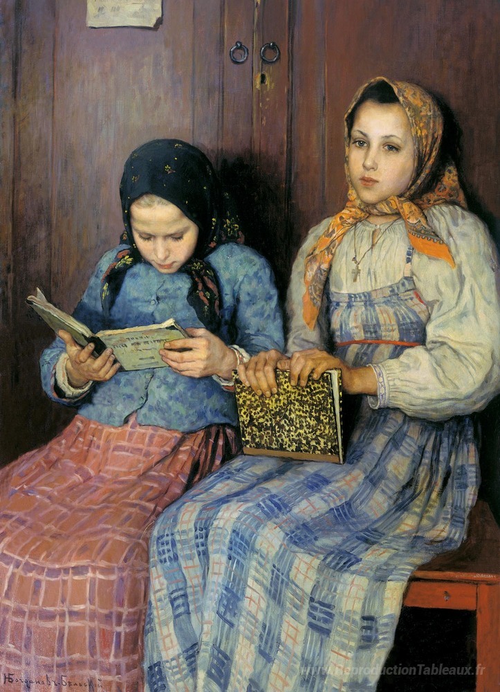 Nous vous proposons une reproduction artisanale sur toile du célèbre tableau 'Écolières' de Nikolay Bogdanov-Belsky, provenant du Musée de la Reproduction.
