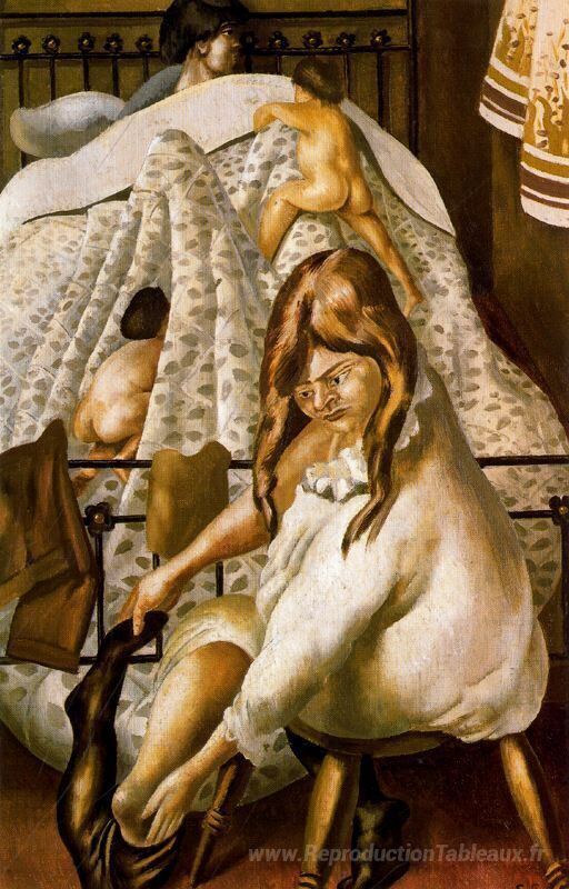 Nous vous proposons une reproduction artisanale sur toile du célèbre tableau 'Aller au lit' de Stanley Spencer, provenant du Musée de la Reproduction.