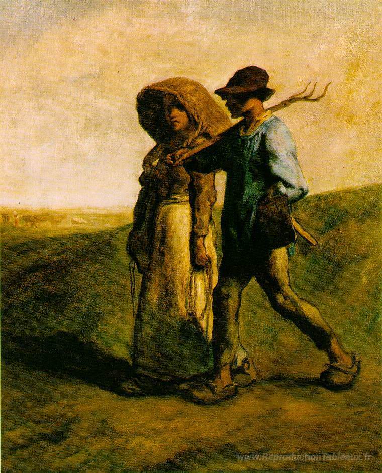 Nous vous proposons une reproduction artisanale sur toile du célèbre tableau 'Aller au travail' de Jean-Francois Millet, provenant du Musée de la Reproduction.
