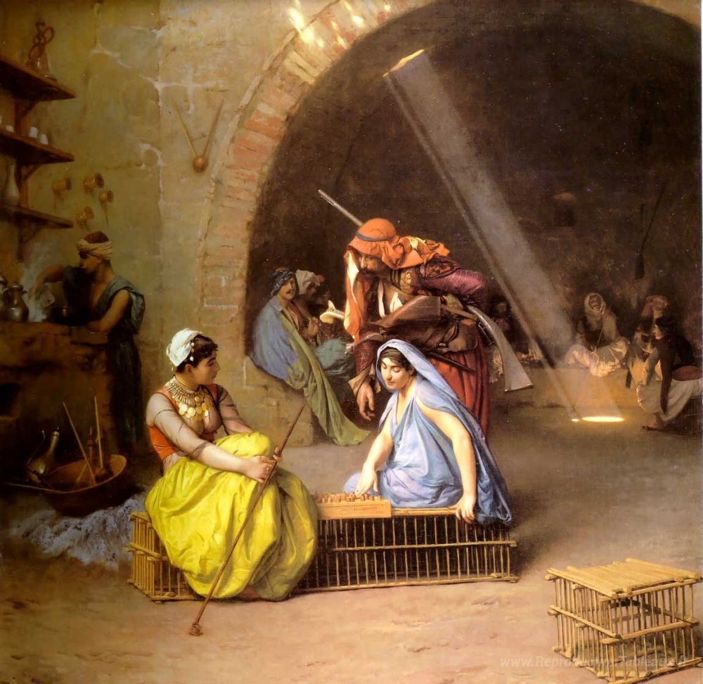 Nous vous proposons une reproduction artisanale sur toile du célèbre tableau 'Amehs jouant aux échecs dans un café' de Jean-Leon Gerome, provenant du Musée de la Reproduction.