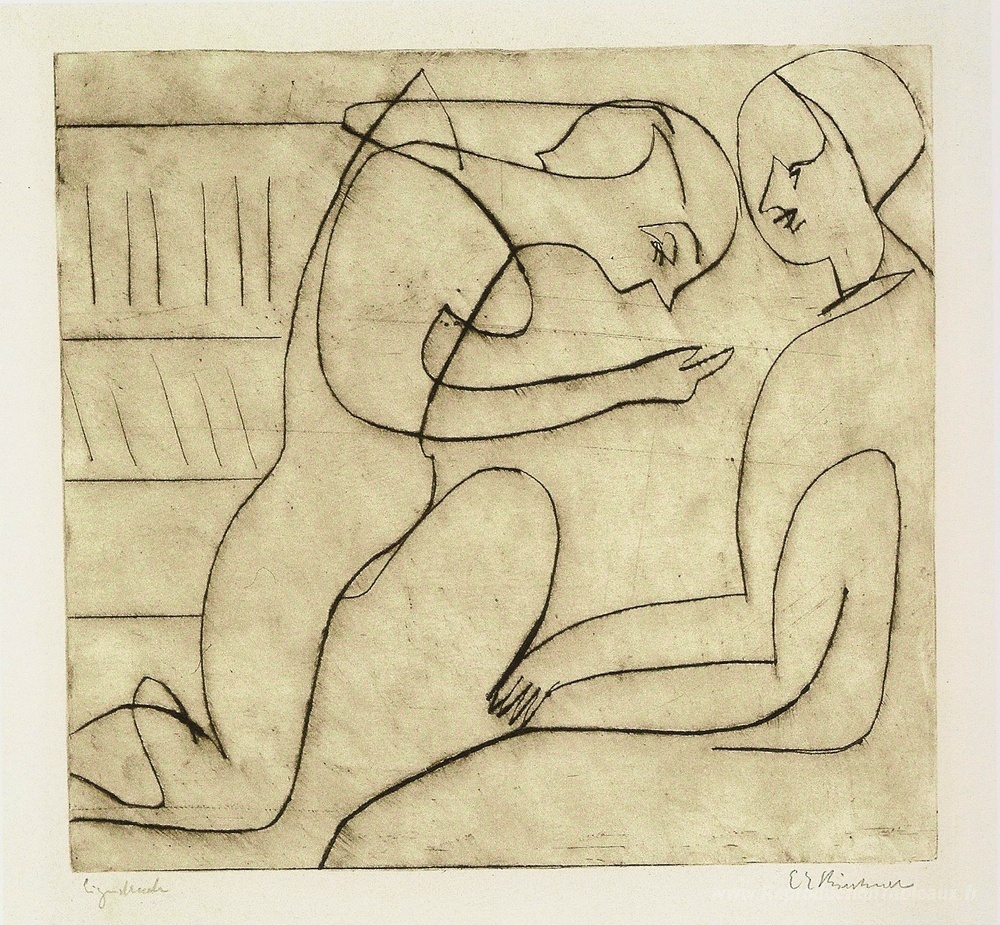 Nous vous proposons une reproduction artisanale sur toile du célèbre tableau 'Amoureux de la bibliothek' de Ernst Ludwig Kirchner, provenant du Musée de la Reproduction.