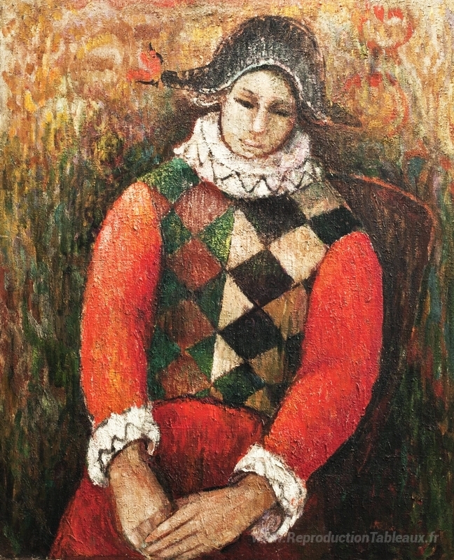 Nous vous proposons une reproduction artisanale sur toile du célèbre tableau 'Arlequin' de George Stefanescu-Ramnic , provenant du Musée de la Reproduction.