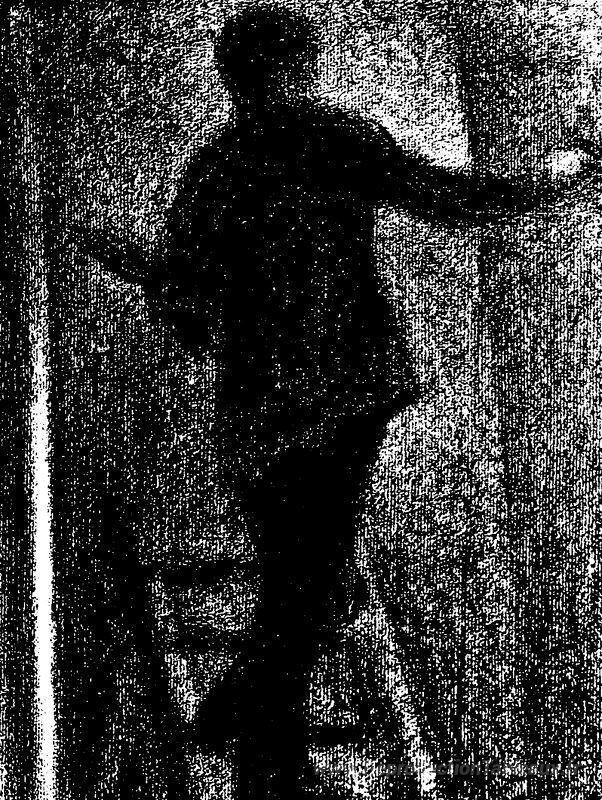 Nous vous proposons une reproduction artisanale sur toile du célèbre tableau 'Artiste au travail' de Georges Seurat, provenant du Musée de la Reproduction.