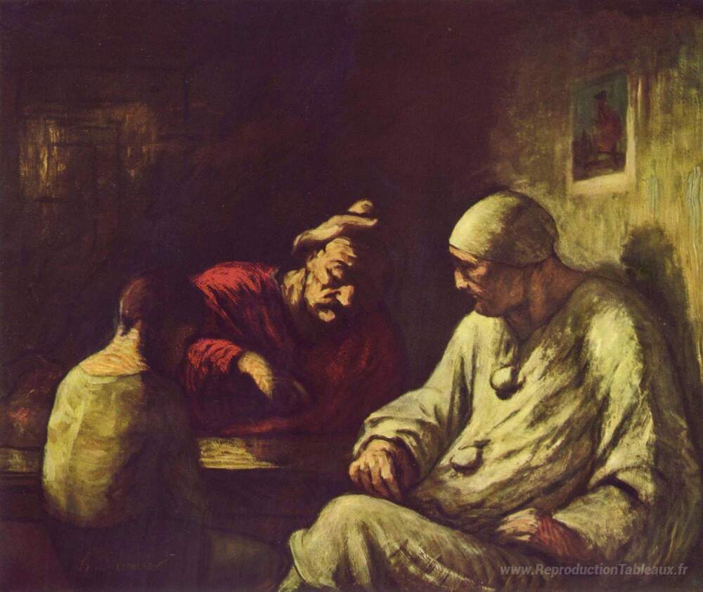 Nous vous proposons une reproduction artisanale sur toile du célèbre tableau 'Attraper le jongleur' de Honore Daumier, provenant du Musée de la Reproduction.