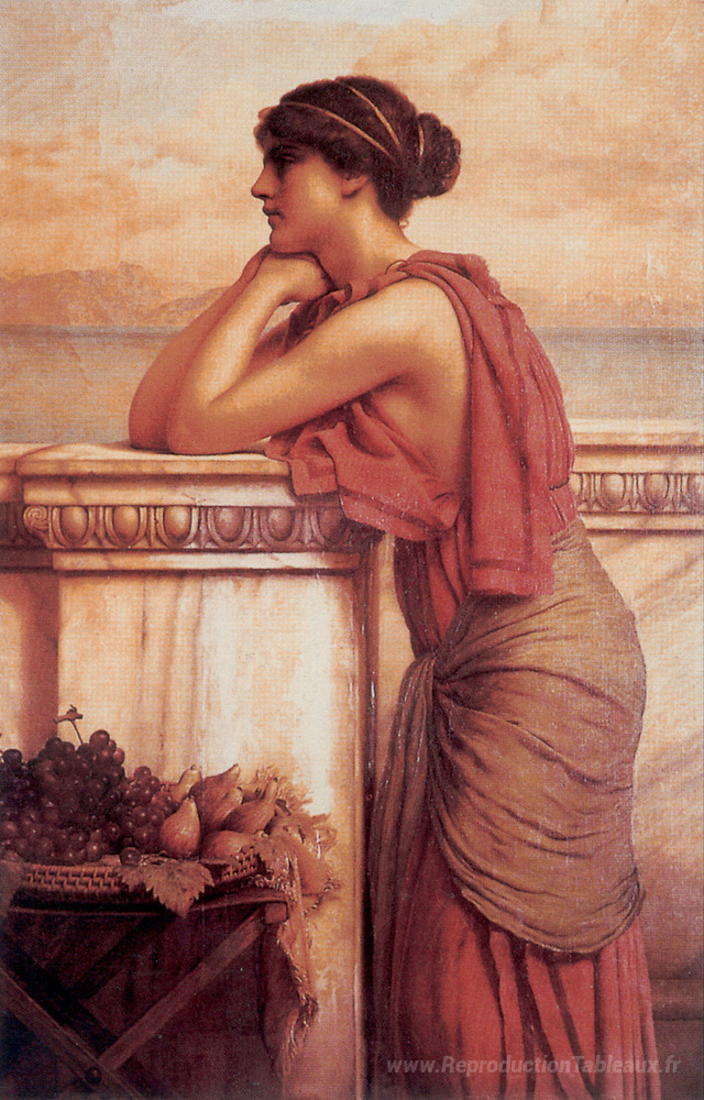 Nous vous proposons une reproduction artisanale sur toile du célèbre tableau 'Au bord du chemin' de John William Godward, provenant du Musée de la Reproduction.