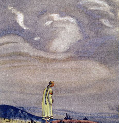Nous vous proposons une reproduction artisanale sur toile du célèbre tableau 'Au bord' de Nicholas Roerich, provenant du Musée de la Reproduction.