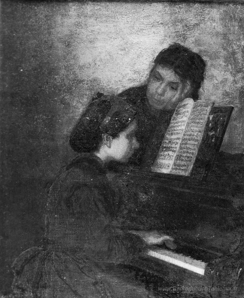 Nous vous proposons une reproduction artisanale sur toile du célèbre tableau 'Au piano' de Thomas Eakins, provenant du Musée de la Reproduction.