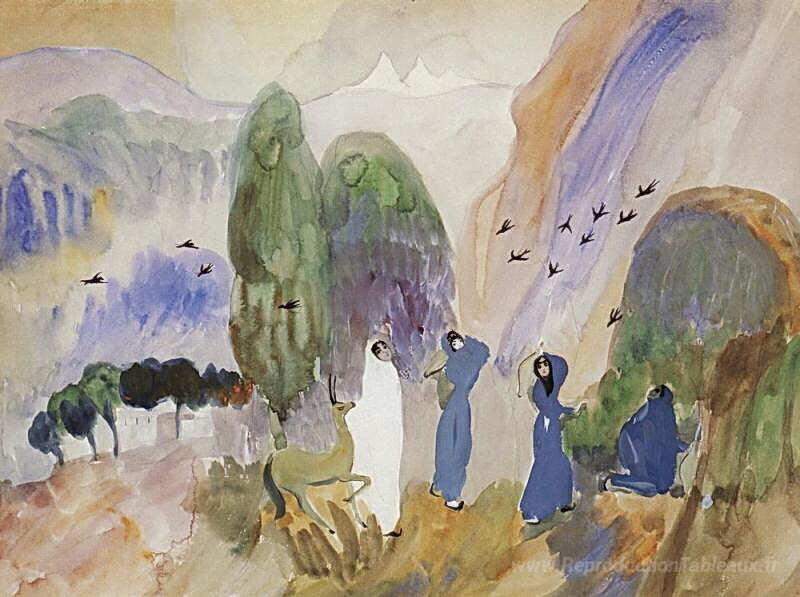 Nous vous proposons une reproduction artisanale sur toile du célèbre tableau 'Au printemps' de Martiros Saryan, provenant du Musée de la Reproduction.
