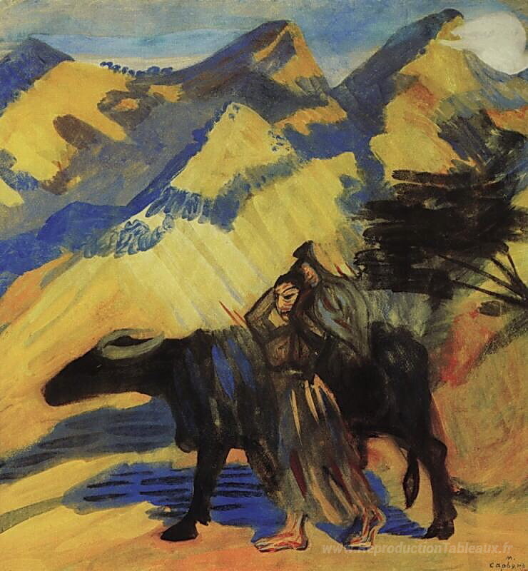 Nous vous proposons une reproduction artisanale sur toile du célèbre tableau 'Au printemps' de Martiros Saryan, provenant du Musée de la Reproduction.