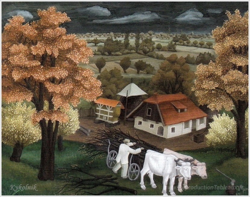 Nous vous proposons une reproduction artisanale sur toile du célèbre tableau 'Automne' de Ivan Generalic, provenant du Musée de la Reproduction.