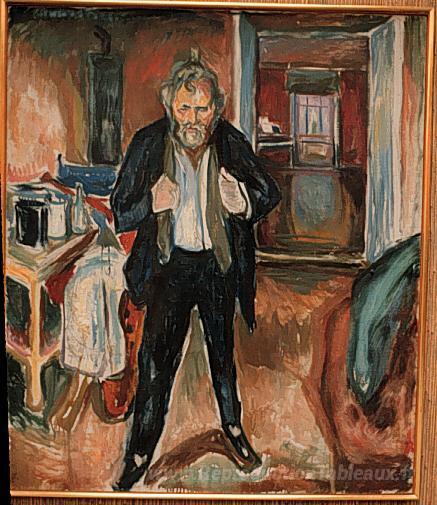 Nous vous proposons une reproduction artisanale sur toile du célèbre tableau 'Autoportrait (en détresse)' de Edvard Munch, provenant du Musée de la Reproduction.