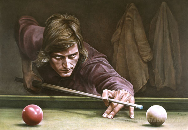 Nous vous proposons une reproduction artisanale sur toile du célèbre tableau 'Billard' de Ken Danby, provenant du Musée de la Reproduction.