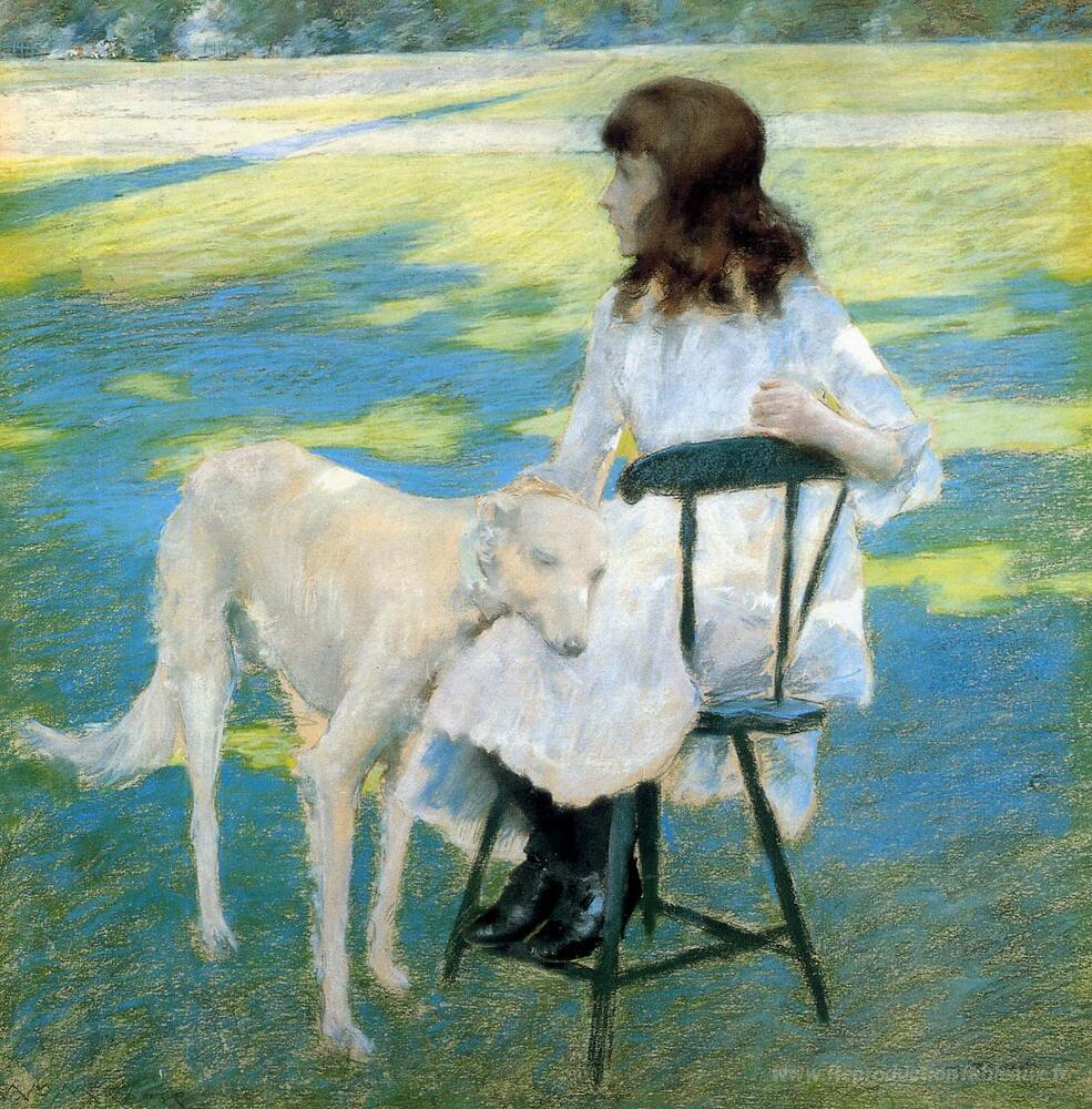 Nous vous proposons une reproduction artisanale sur toile du célèbre tableau 'Bons amis' de William Merritt Chase, provenant du Musée de la Reproduction.