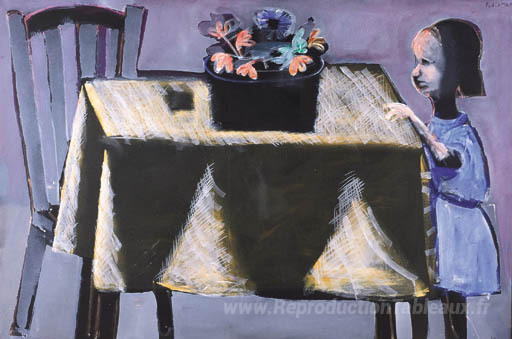 Nous vous proposons une reproduction artisanale sur toile du célèbre tableau 'Bouquet de Béatrice' de Charles Blackman, provenant du Musée de la Reproduction.