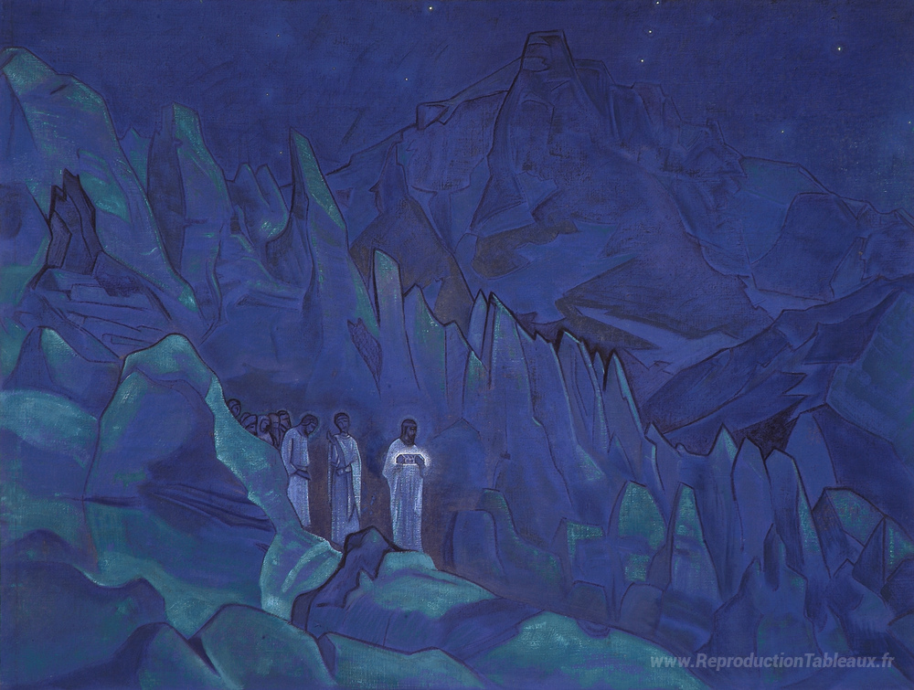 Nous vous proposons une reproduction artisanale sur toile du célèbre tableau 'Brûler l'obscurité' de Nicholas Roerich, provenant du Musée de la Reproduction.