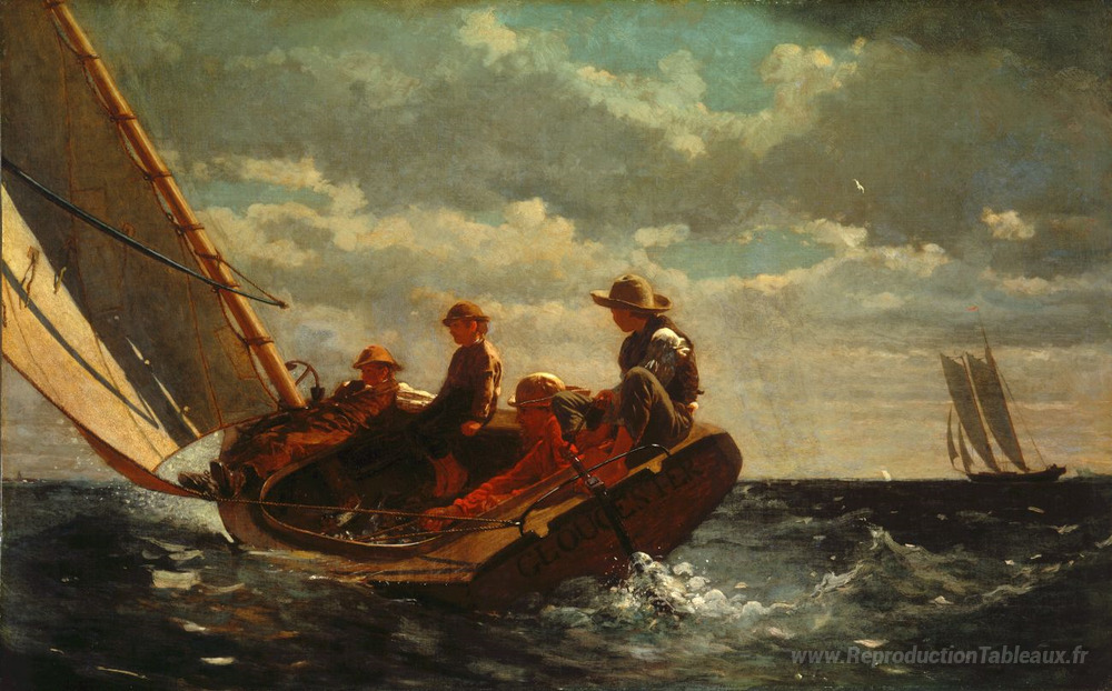Nous vous proposons une reproduction artisanale sur toile du célèbre tableau 'Briser (un vent équitable)' de Winslow Homer, provenant du Musée de la Reproduction.
