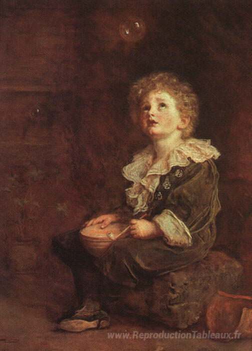 Nous vous proposons une reproduction artisanale sur toile du célèbre tableau 'Bulles' de John Everett Millais, provenant du Musée de la Reproduction.
