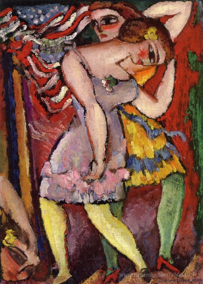 Nous vous proposons une reproduction artisanale sur toile du célèbre tableau 'Burlesco' de Max Weber, provenant du Musée de la Reproduction.