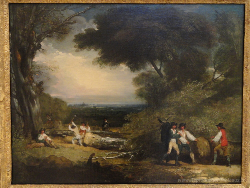 Nous vous proposons une reproduction artisanale sur toile du célèbre tableau 'Butteurs à bois à Windsor Park' de Benjamin West, provenant du Musée de la Reproduction.