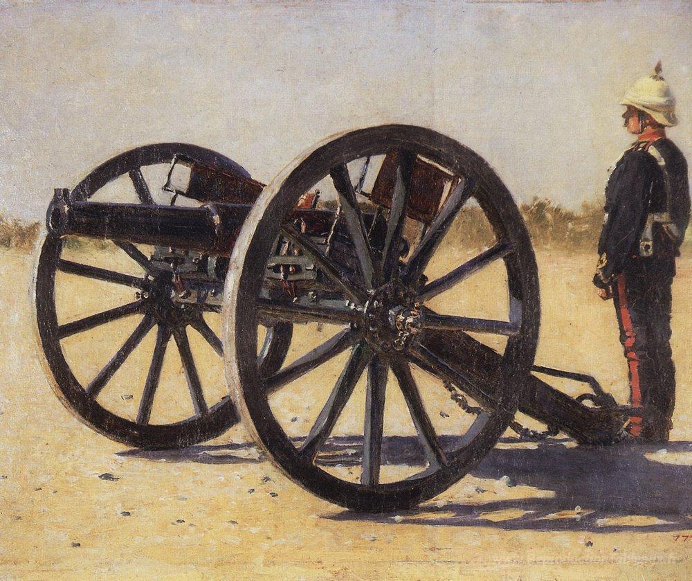Nous vous proposons une reproduction artisanale sur toile du célèbre tableau 'Canon' de Vasily Vereshchagin, provenant du Musée de la Reproduction.