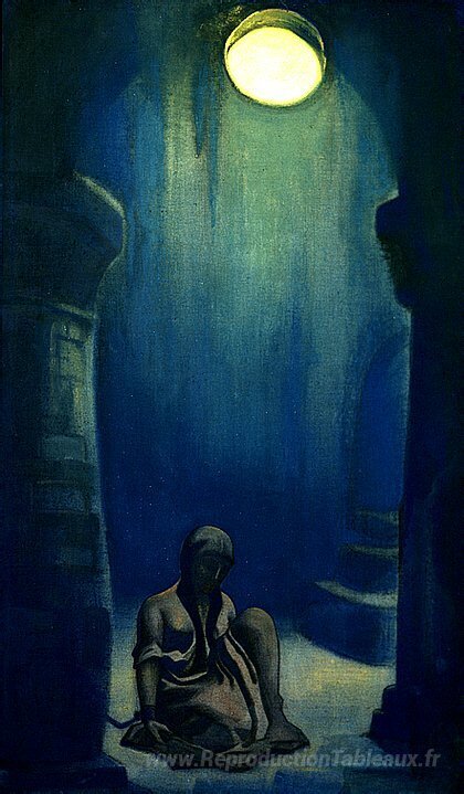 Nous vous proposons une reproduction artisanale sur toile du célèbre tableau 'Captif' de Nicholas Roerich, provenant du Musée de la Reproduction.