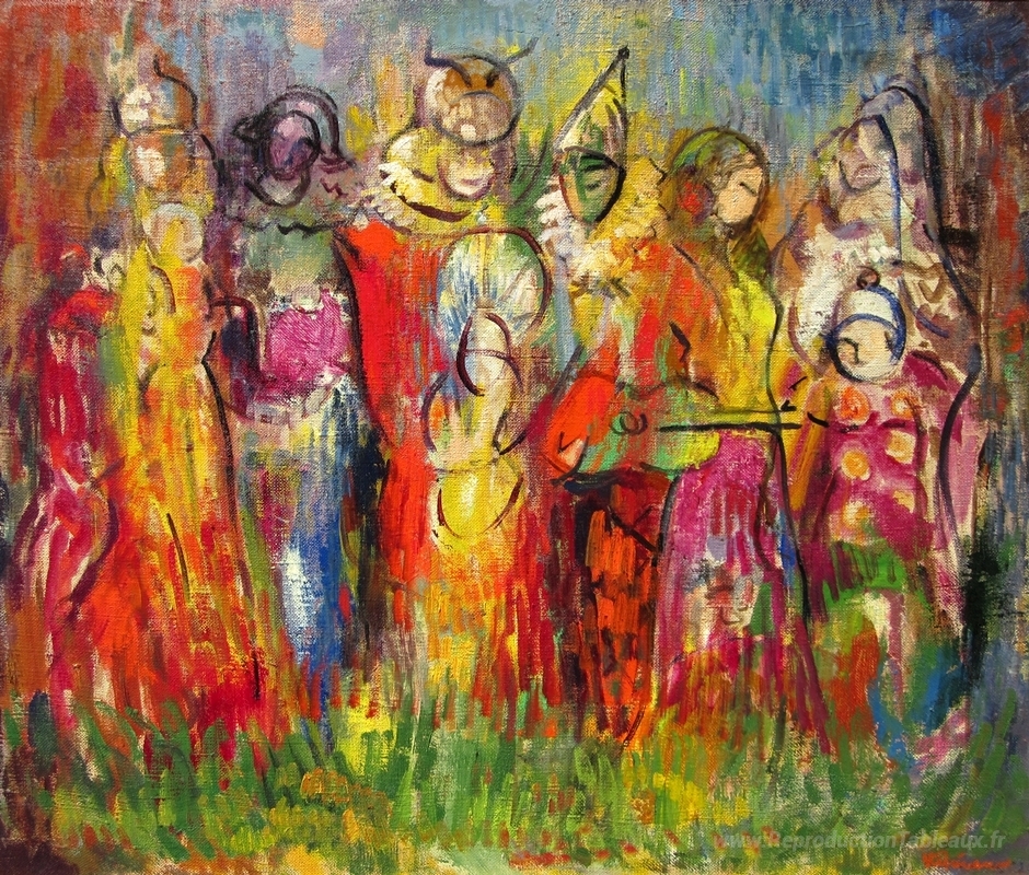 Nous vous proposons une reproduction artisanale sur toile du célèbre tableau 'Carnaval' de George Stefanescu-Ramnic , provenant du Musée de la Reproduction.