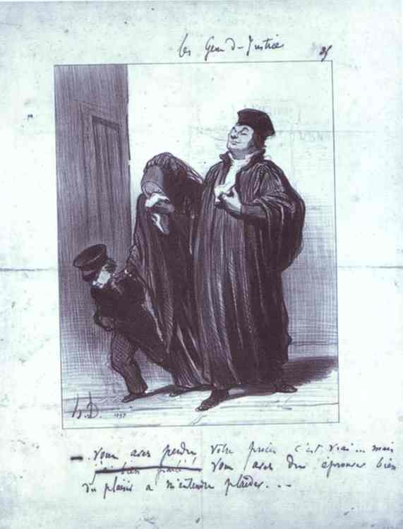 Nous vous proposons une reproduction artisanale sur toile du célèbre tableau 'C'est vrai que vous avez perdu votre cas ... mais vous auriez dû' de Honore Daumier, provenant du Musée de la Reproduction.