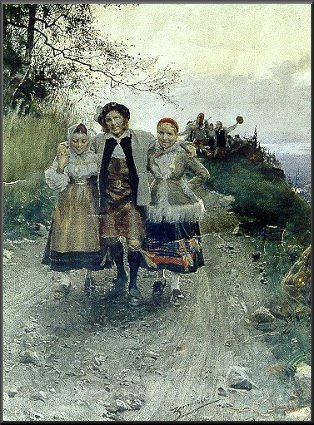 Nous vous proposons une reproduction artisanale sur toile du célèbre tableau 'Chanceux avec les dames' de Anders Zorn, provenant du Musée de la Reproduction.