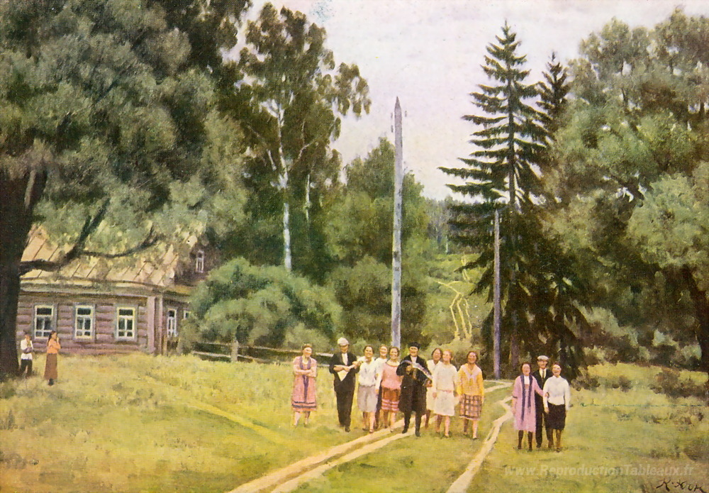 Nous vous proposons une reproduction artisanale sur toile du célèbre tableau 'Chants de la jeunesse collective. Ligachevо' de Konstantin Yuon, provenant du Musée de la Reproduction.