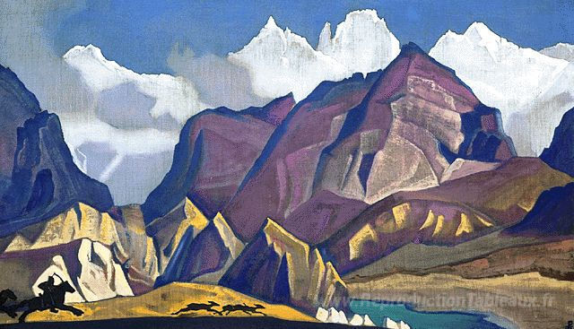Nous vous proposons une reproduction artisanale sur toile du célèbre tableau 'Chasse' de Nicholas Roerich, provenant du Musée de la Reproduction.