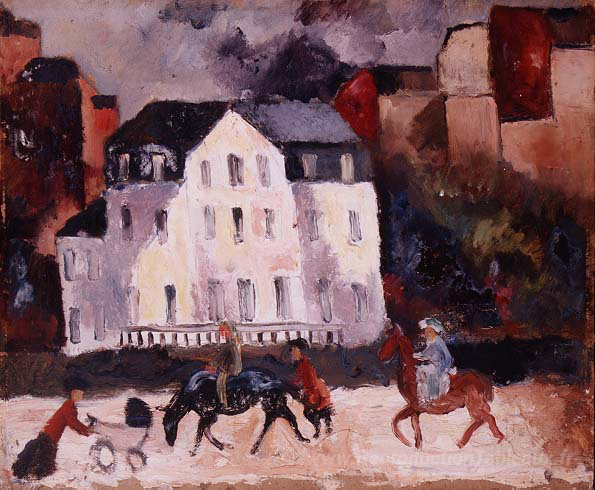 Nous vous proposons une reproduction artisanale sur toile du célèbre tableau 'Chevaux à Paris' de Christopher Wood, provenant du Musée de la Reproduction.