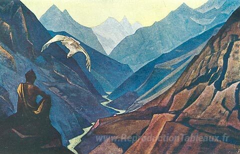 Nous vous proposons une reproduction artisanale sur toile du célèbre tableau 'Commande de l'enseignant' de Nicholas Roerich, provenant du Musée de la Reproduction.