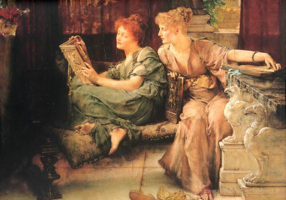 Nous vous proposons une reproduction artisanale sur toile du célèbre tableau 'Comparaisons' de Sir Lawrence Alma-Tadema, provenant du Musée de la Reproduction.