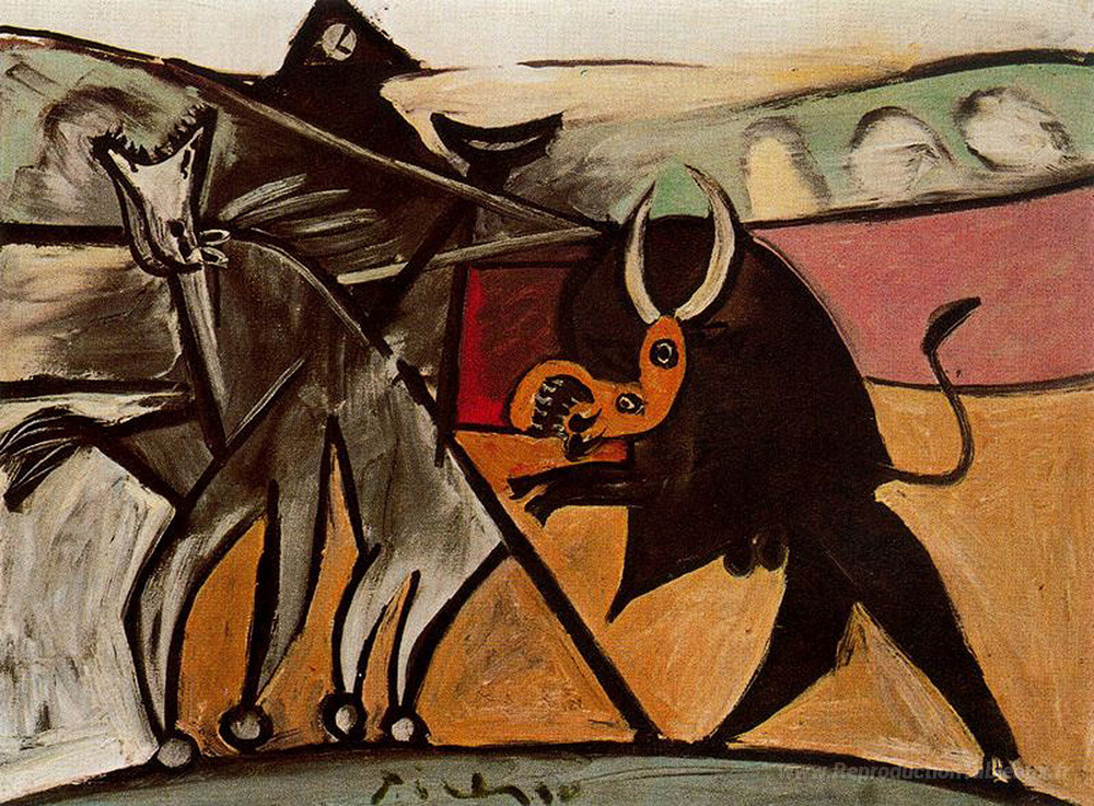 Nous vous proposons une reproduction artisanale sur toile du célèbre tableau 'Corrida' de Pablo Picasso, provenant du Musée de la Reproduction.