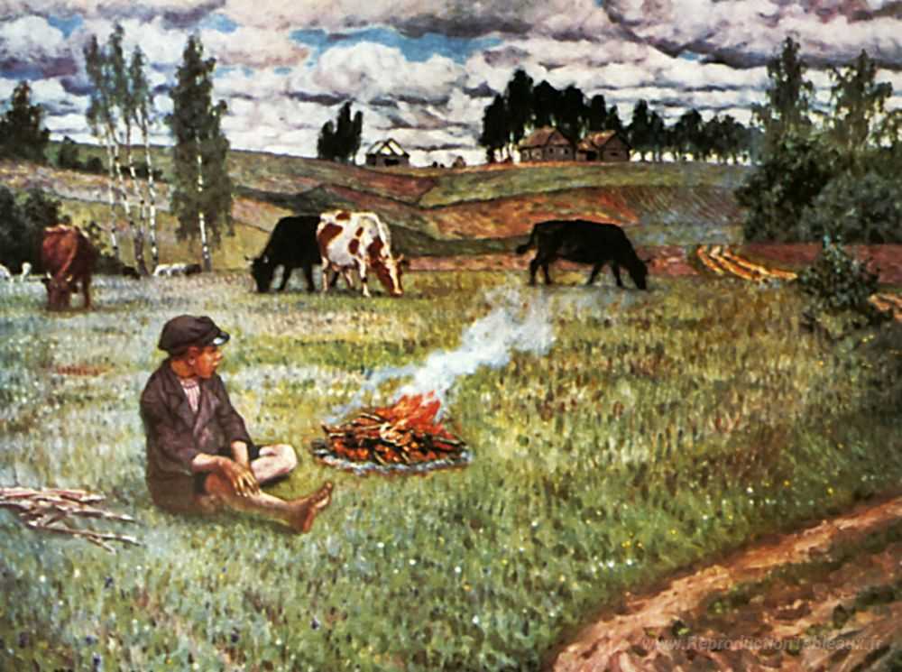 Nous vous proposons une reproduction artisanale sur toile du célèbre tableau 'Cow-boy' de Nikolay Bogdanov-Belsky, provenant du Musée de la Reproduction.